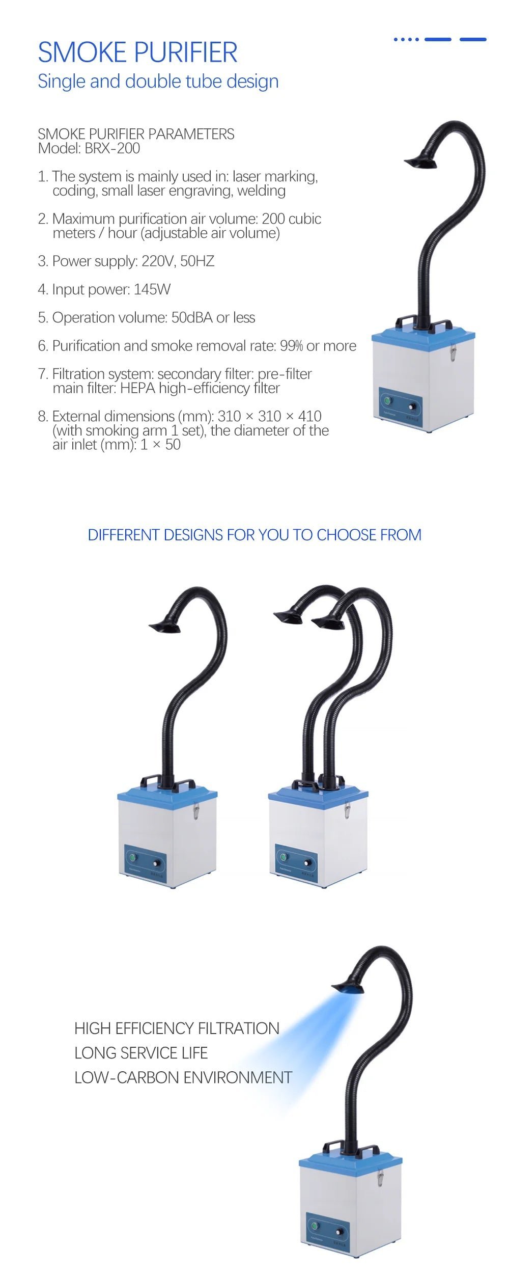 200W Smoke Purifier – Dust Removal System for CO2 & Fiber Laser Marking Machines (Jewelry Laser Industry Accessory)