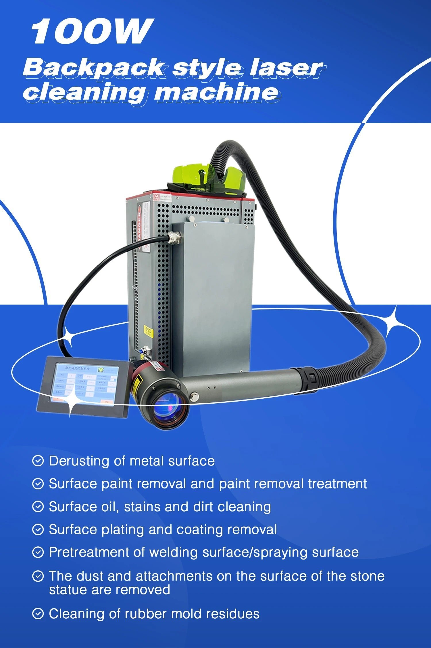 JPT 300W Portable Pulse Laser Cleaner Backpack Portable Laser Cleaner CE Approved 200W Rust Removal for Wood Stone